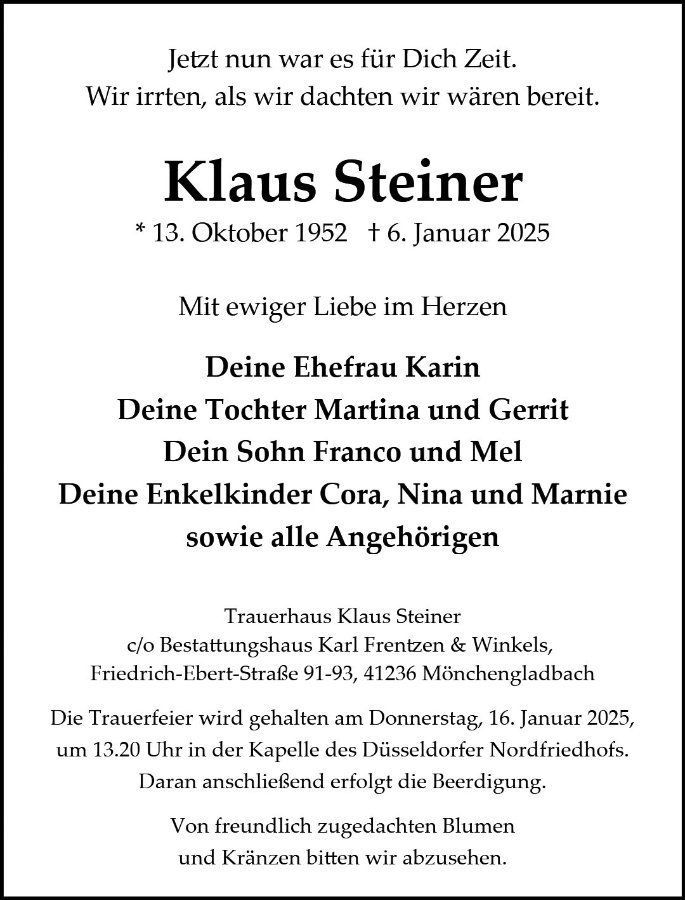 wir wünschen Ihnen für die kommende Zeit viel Kraft und dass es Ihnen gelingt, dankbar auf die positiven Erinnerungen zurückzublicken. Diese Gedenkseite möge Ihnen dabei helfen, Ihre Trauer zu teilen und das Andenken gemeinsam wachzuhalten.